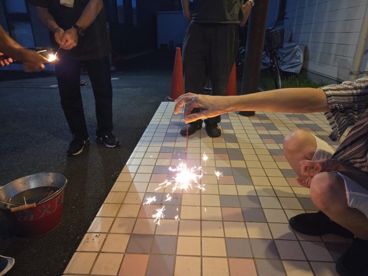 その後は皆さん、色が変わるものや勢いよく火花が散るものなど様々な花火を楽しまれ、最終的に笑顔で終えられました。