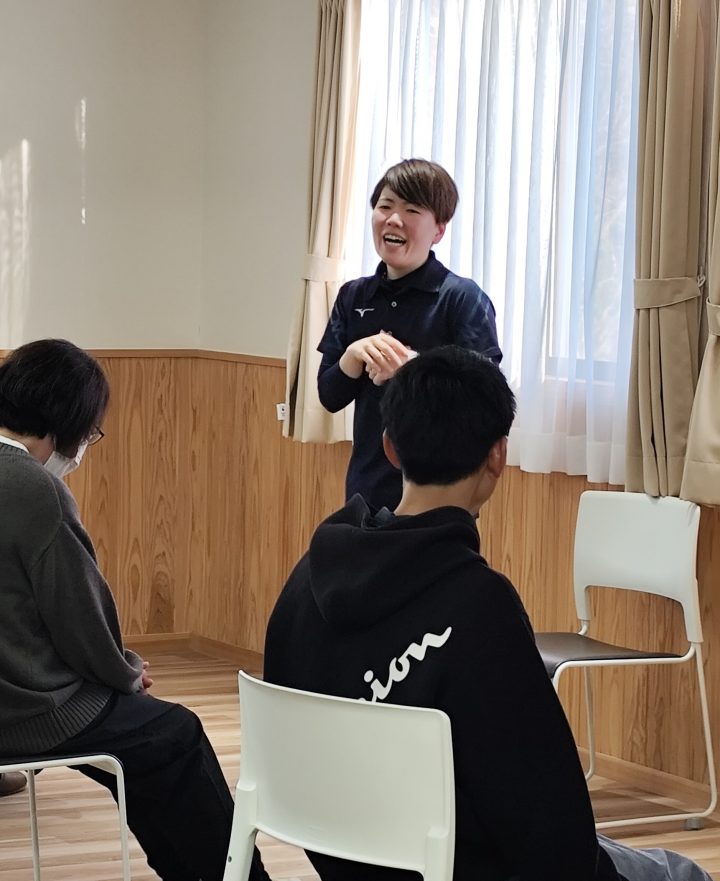 今回は株式会社さんびる 佐藤花織 様をお迎えし、「椅子に座って出来るストレッチ」を教えていただきました。対人援助の仕事は常に緊張感があり、知らぬ間に体に力が入っていることも。仕事の合間に身体をほぐしてリラックスし、仕事の効率アップに繋がればと思い、企画しました。