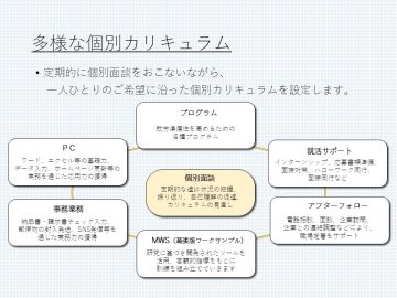 e-ラーニングを活用してワード、エクセル等の基礎を学び、データ入力等の実務を通じて応用力を身につけます。