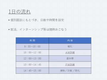 一般企業(事務職等)でのインターンシップをおこないます。